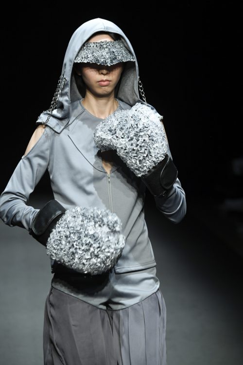Brend ,,EmulEos” zadao je ,,udarac” na početku večeri sa manekenima punim stava koji su nosili bokserske rukavice ukrašene dijamantima i vizire. Dizajnerka Emili Prozinksi iz Sjeverne Karoline bila je inspirisana bokserkama u kolekciji ,,Čvršća od dijamanata”. Srebrna i crna dominirale su na velikim kapuljačama, metalnim lancima, ukrašenim čizmama i vještačkoj zmijskoj koži stvarajući avangardan stil. Dijamanti i perle sijali su pod svjetlošću, dok su šifon i žoržet blistali sa najmanjim pokretom. Odjevna kombinacija koja se istakla jeste baloner pantalone sa sivom jaknom, srebrnim lancima i velikom kapuljačom.