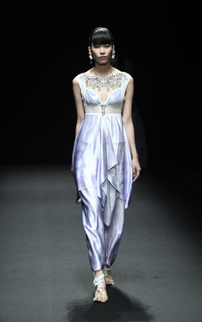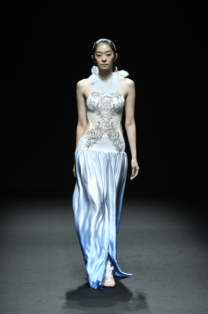Sljedeći je bio američki brend ,,The House of AmZ” koji je predstavio kolekciju razdvojenu u nekoliko segmenata – Zima, Neutralno, Lotus, Rumenilo, Stapanje i Finale. Svaka kapsula razvila je koncept ,,Samo-stapanje”, reflektujući razne emocije i odgovore na situacije dok se razvijamo i rastemo ne razlikujući se od cvijeta lotus. Dizajnerka Aleksandra Mari Zofcin iskoristila je manipulacije tkanine da stvori oblike, pletiva, nabore i vunene trake koje su formirale siluetu. Selektivna paleta boja, od zelene, bež, ružičaste, krem, plave, sive i crvene istakla je ženstveni kroj. Delikatni preklop dao je teksturu, a prelijepi materijal od šantal svile, iridescentan u boji, divno je hvatao svjetlost.