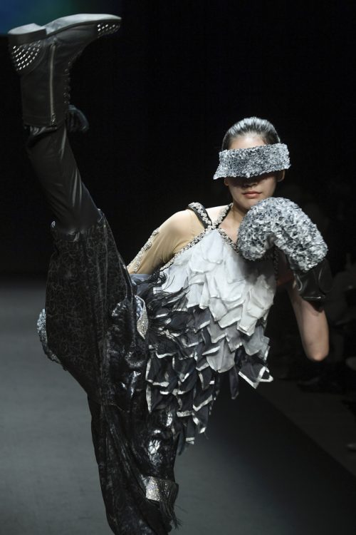 Brend ,,EmulEos” zadao je ,,udarac” na početku večeri sa manekenima punim stava koji su nosili bokserske rukavice ukrašene dijamantima i vizire. Dizajnerka Emili Prozinksi iz Sjeverne Karoline bila je inspirisana bokserkama u kolekciji ,,Čvršća od dijamanata”. Srebrna i crna dominirale su na velikim kapuljačama, metalnim lancima, ukrašenim čizmama i vještačkoj zmijskoj koži stvarajući avangardan stil. Dijamanti i perle sijali su pod svjetlošću, dok su šifon i žoržet blistali sa najmanjim pokretom. Odjevna kombinacija koja se istakla jeste baloner pantalone sa sivom jaknom, srebrnim lancima i velikom kapuljačom.