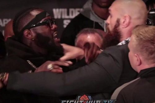 Vidno iznervirani Vajlder je vikao i prijetio, zatim počeo i da vrijeđa. Fjuri je, za to vrijeme, djelovao smireno i nasmijano. Poslije pola minuta došlo je i do fizičkog kontakta, a zatim, umalo, i do tuče, koju su spriječili članovi timova i službena lica…