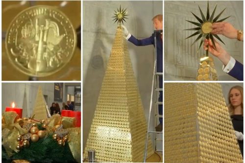 Najskuplja jelka u Evropi napravljena je od zlatnika, a ukrasili su je zaposleni u kompaniji koja se bavi trgovinom zlata i drugih plemenitih metala “Pro Aurum” u Minhenu u Njemačkoj.