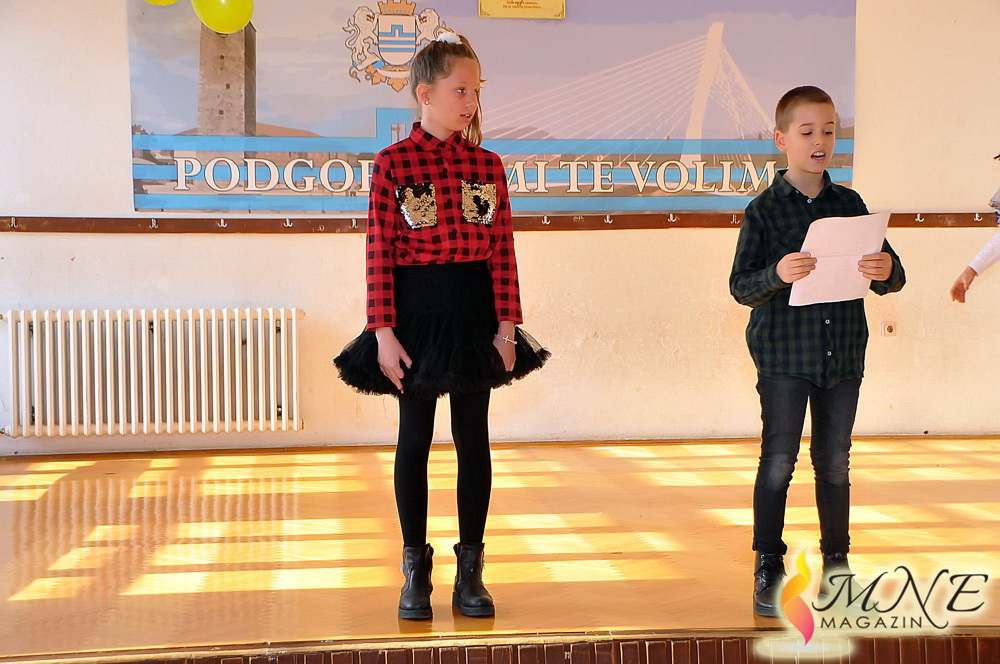 -Naši učenici su u veselom duhu, na najbolji mogući način, prenijeli emocije publici. Učenici drugog, trećeg i četvrtog razreda osmislili su, uz našu pomoć, program, recitovali, izveli ritmičku i baletsku tačku, a učenici starijih razreda nastupili su u horu -kazala je učiteljica Milja Božović, u ime učiteljica koje su koncipirale program.