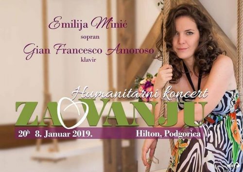 Operska pjevačica Emilija Minić 8. januara od 20 sati u Kristalnoj dvorani hotela ,,Hilton Podgorica Crna Gora” organizuje humanitarni koncert za liječenje dječaka Vanje Jovanovića.