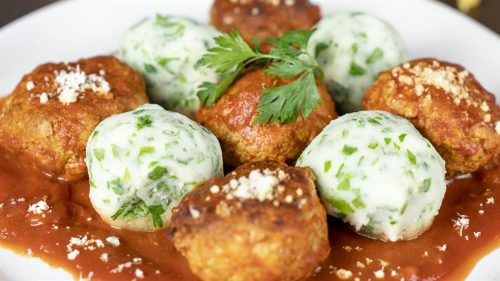 2.Iz mase izdvajati količinu dovoljnu da se naprave loptice (može da posluži i kašika za sladoled). Mesne kuglice pržiti na ulju na srednjoj vatri sa obje strane dok ne dobiju krckavu koricu, ali da ne budu pečene do kraja. Kuglice stavite da se malo ocijede, da ne budu previše masne. Izbaciti ulje, pa vratiti tiganj na ringlu i dodati pelat. Vratite kuglice da se još malo ukuvaju u sosu.
