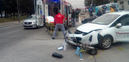 U sudaru motora i automobila koji se dogodio danas na Bulevaru Ivana Crnojevića jedna osoba je povrijeđena.