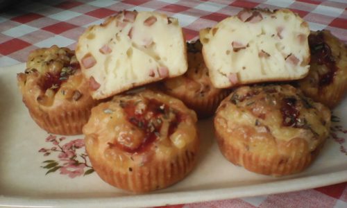 2.Dobro promiješati i dodati sjeckanu pica šunku, pa sipati u papirne korpice stavljene u kalup za mafine.