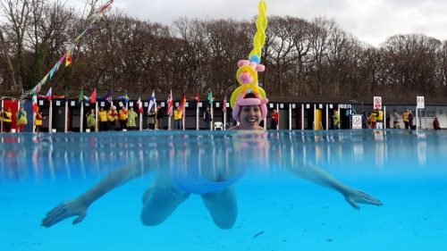 Učesnica na takmičenju u plivanju u hladnoj vodi u južnom Londonu.
