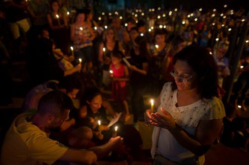 Molitva ispred crkve u Brazilu posle kolapsa brane u blizini velikog rudnika.