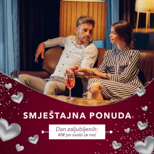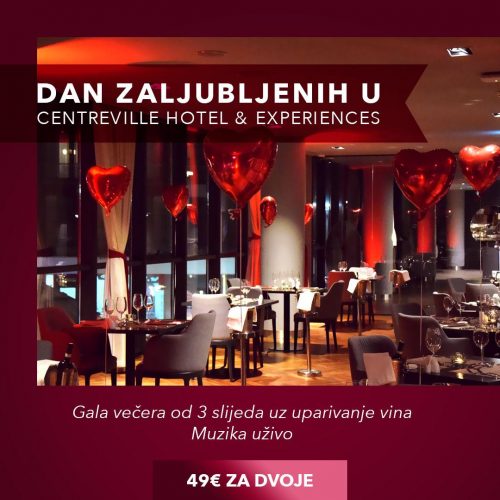 Kreativni tim hotela CentreVille prpremio je poseban smještajni paket u sedmici od 11. do 17. februara. Za samo 40 eura po osobi gostima je omogućeno da provedu noć u romantičnoj sobi u kojoj će ih dočekati proseko, slatka reprezentacija hotelskog poslastičara kao i kafa, čaj i voda. Takođe, u sklopu ove ponude, gosti će moći da uživaju 20% popusta na sve tretmane i usluge Banya Wellness i SPA centra, 20% popusta na hranu i piće u The Living Room-u, besplatan bežični Internet i besplatan parking.