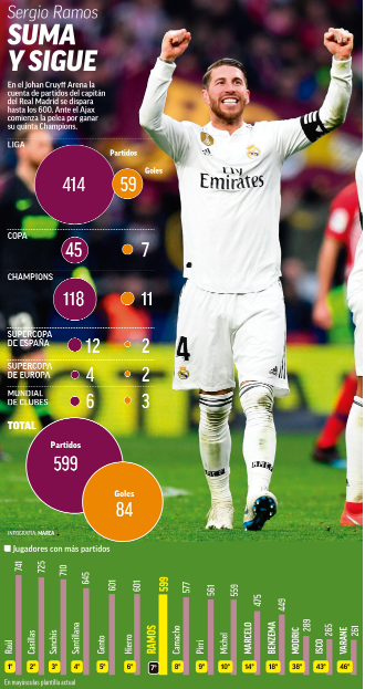 Najviše utakmica u dresu Reala odigrao je Raul Gonzales (741), a ispred Ramosa su još Kasiljas (725), Sančis (710), Santiljana (645), Hento (601) i Jero (601).