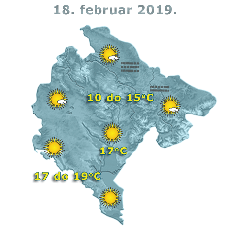 Danas će u napoj zemlji biti pretežno sunčano. Ujutru ili prijepodne, mjestimično po kotlinama magla i sumaglica. Vjetar slab do umjeren, promjenljivog smjera. Najviša dnevna temperatura vazduha 10 do 19 stepeni, najavili su iz Hidrometeorološkog zavoda Crne Gore.