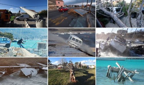 U Zadru i na širem zadarskom području rušili su se elementi sa zgrada, saobraćajni znakovi, hemijski toaleti, pa čak i čitave autobuske stanice. Potopljeno je više čamaca.