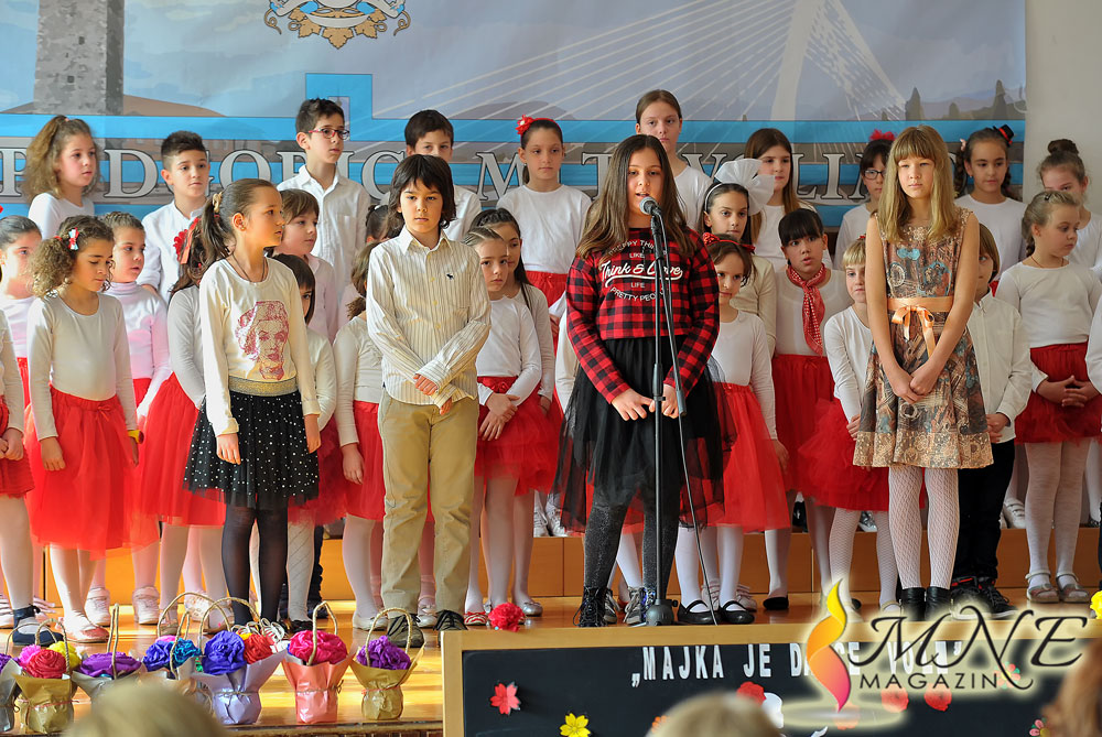 -Htjeli smo da vam danas, nešto malo ranije, čestitamo praznik jer znamo da vam je upravo ova čestitka koju ćete dobiti od svoje djece najvažnija i najbitnija. Nemojte zamjeriti njihovoj nesavršenosti jer danas, pred vama, imaju više treme. Ovaj program pripremili su naši prvaci zajedno sa svojim malo starijim drugarima i svojim učiteljima i nastavnicima – istakla je direktorka Stojanović.