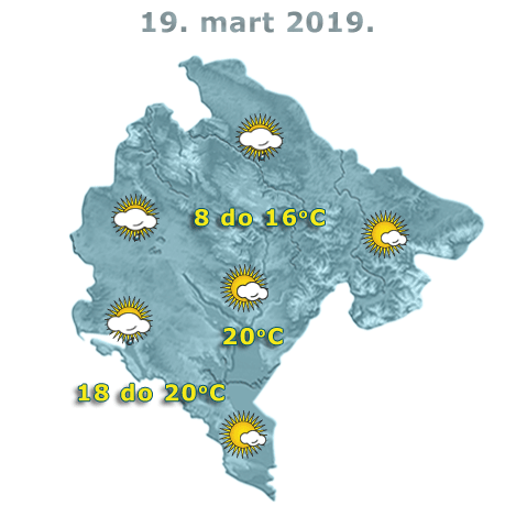 Danas će u našoj zemlji biti promjenljivo oblačno sa sunčanim periodima. U zapadnim predjelima više oblaka ponegdje sa slabom kišom. Vjetar slab do umjeren južnih smjerova, tokom noći sjeverni. Najviša dnevna temperatura vazduha 8 do 20 stepeni, najavili su iz Hidrometeorološkog zavoda Crne Gore.