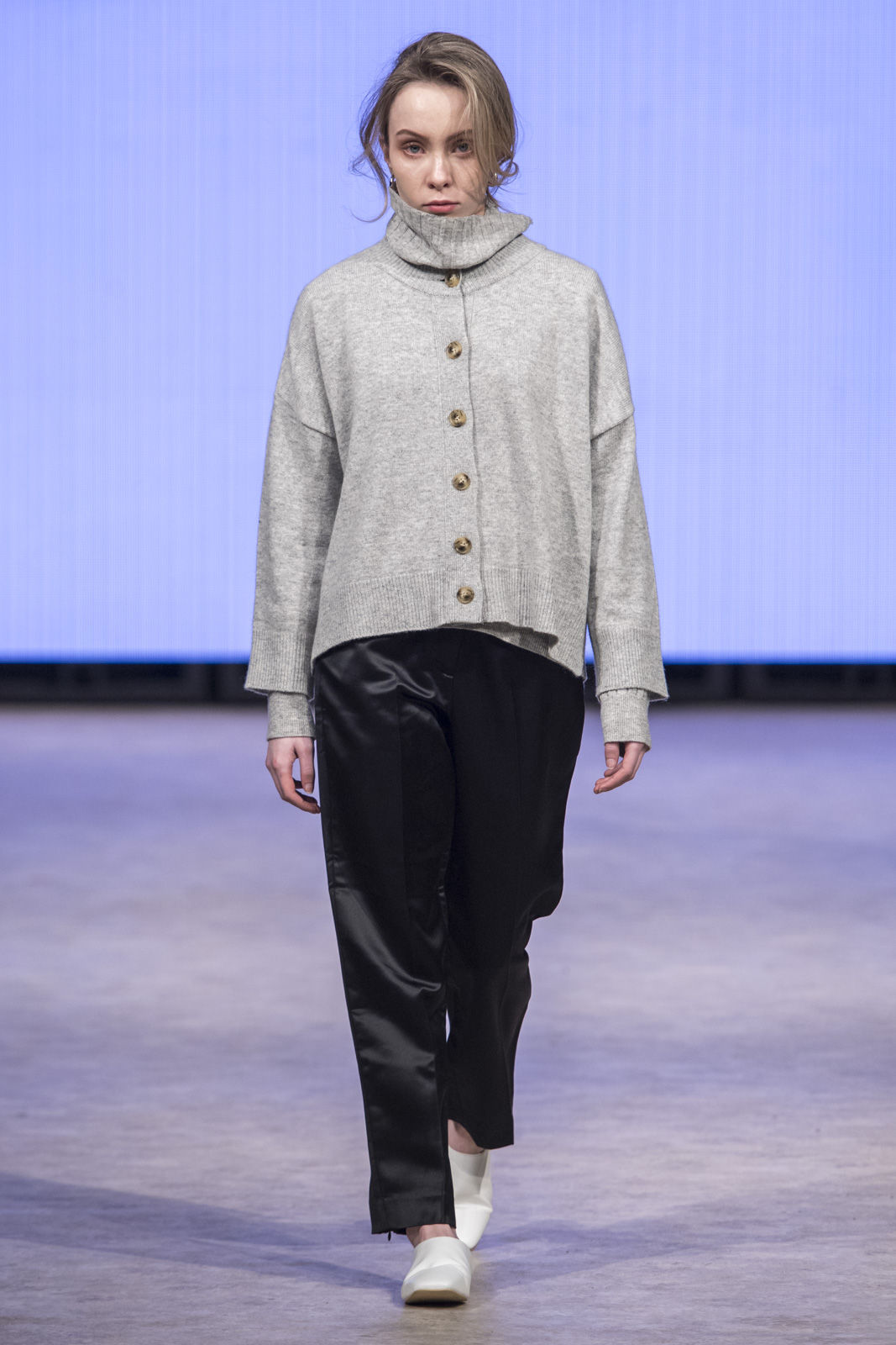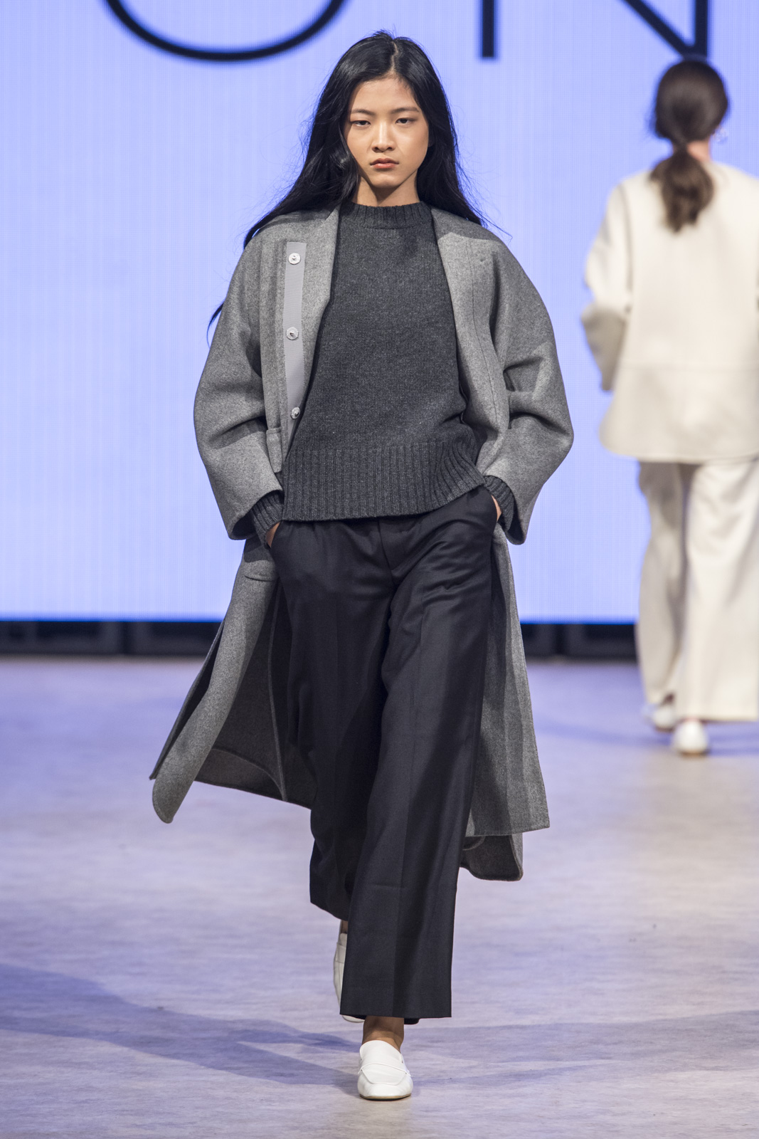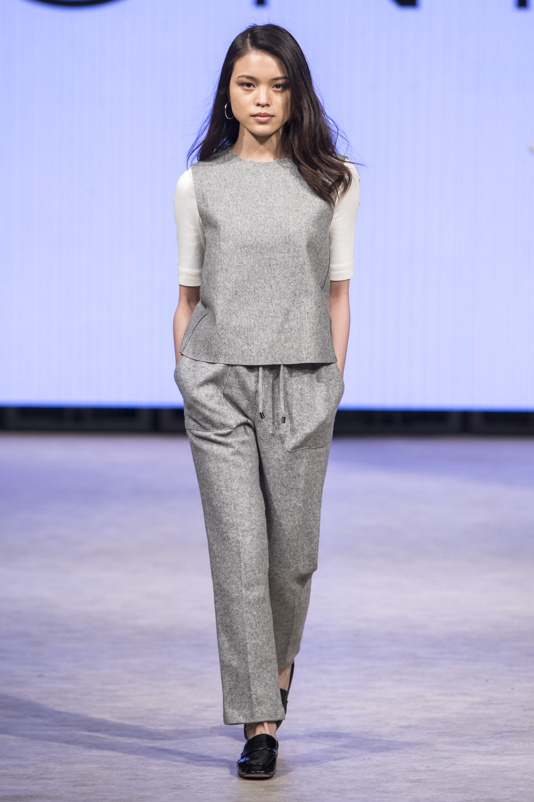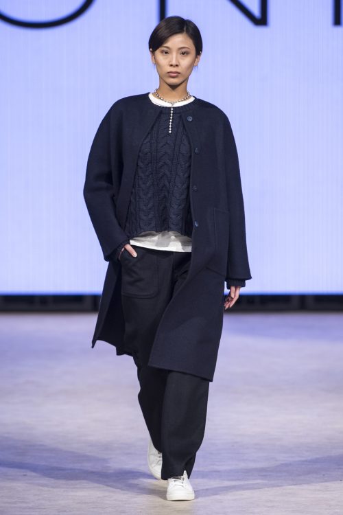 YONFA, a collection from Japanese designer Kim Yonghwa, was the embodiment of accessible, comfortable elegance to end the evening. In her collection, Yonghwa played with dimensions, offering a range of oversized jackets, crisp calf-length white shirts and sweaters cut at unique yet flattering angles. Yonghwa’s commitment to basic materials, such as wool and cotton, worked in harmony with her flattering silhouettes and elementary palette of white, navy, black and tan, to create looks free from fuss that express comfort, elegance and accessible style.
