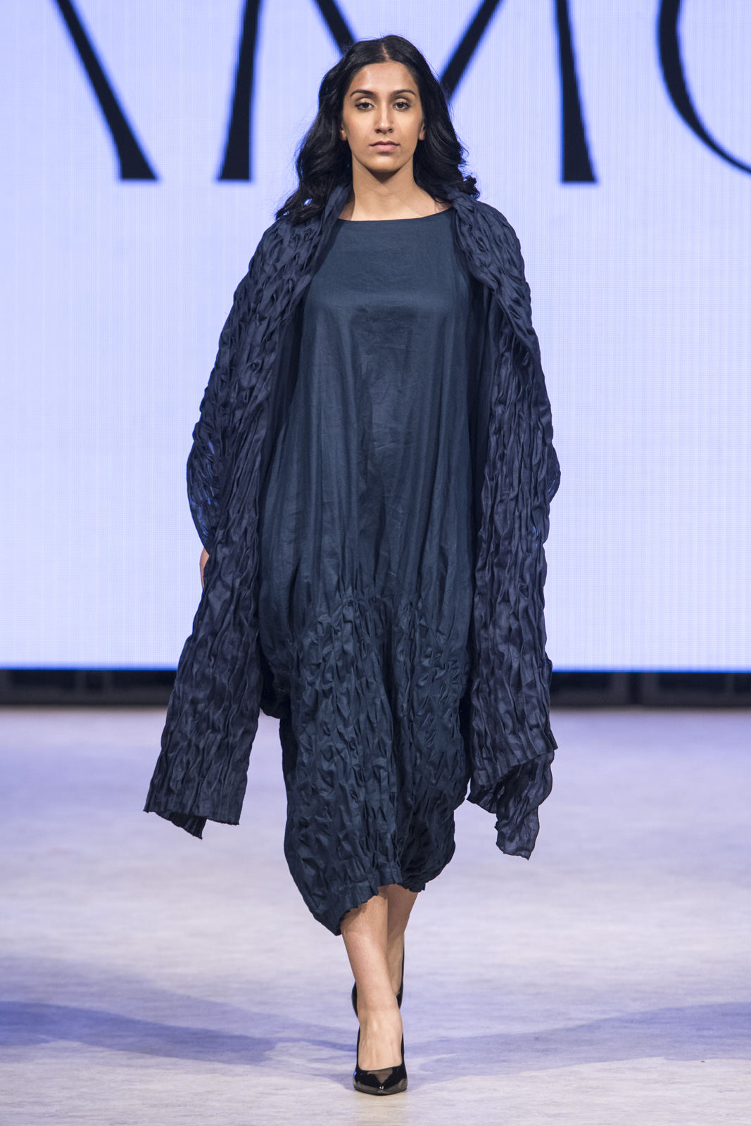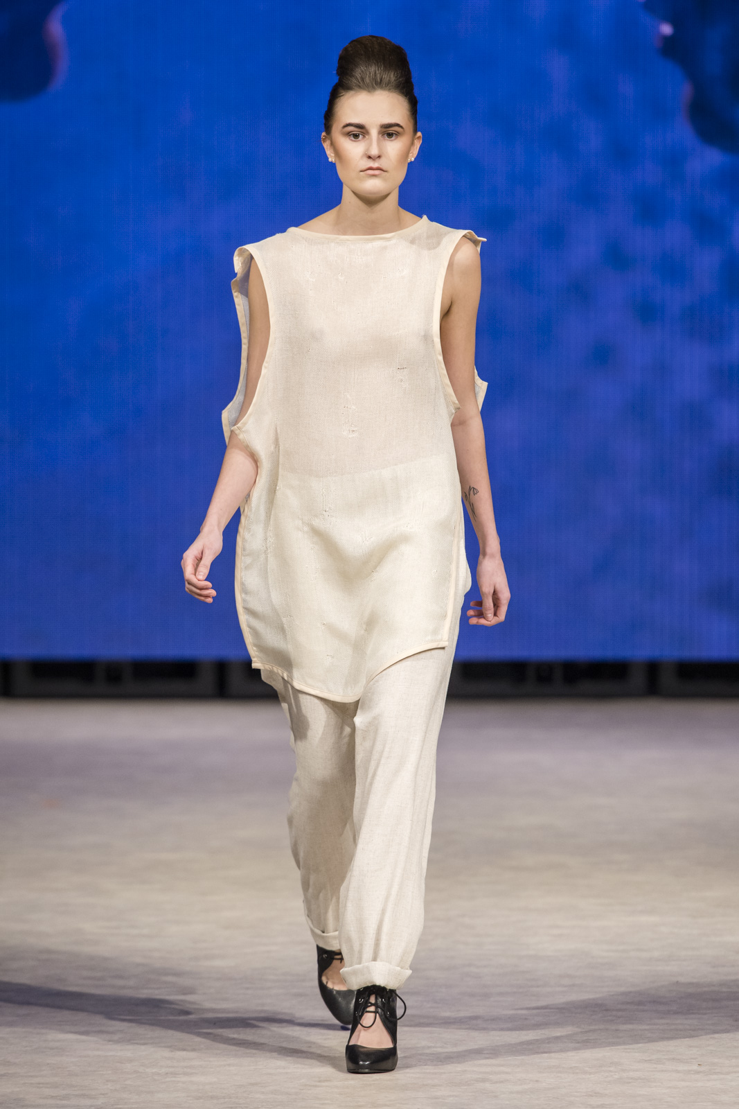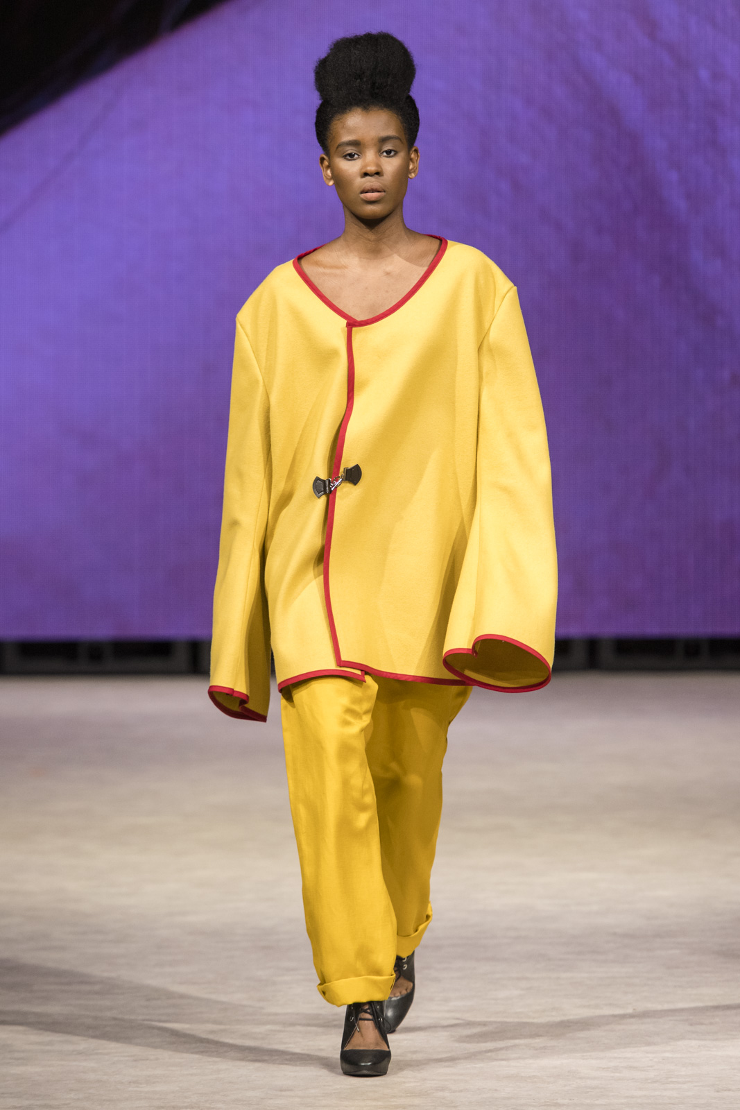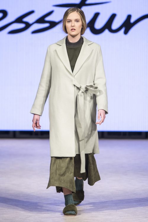 YONFA, a collection from Japanese designer Kim Yonghwa, was the embodiment of accessible, comfortable elegance to end the evening. In her collection, Yonghwa played with dimensions, offering a range of oversized jackets, crisp calf-length white shirts and sweaters cut at unique yet flattering angles. Yonghwa’s commitment to basic materials, such as wool and cotton, worked in harmony with her flattering silhouettes and elementary palette of white, navy, black and tan, to create looks free from fuss that express comfort, elegance and accessible style.