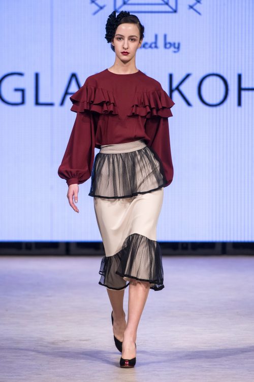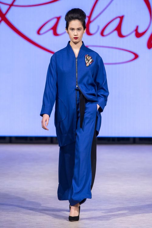 The Radastylecollection, by Belarusian designer Tatsiana Sychova, was the epitome of timeless, beautiful elegance. ,,Orbit of Time” utilized classic, flattering silhouettes in sensual fabrics that stood apart with a mastery of fine details. Stunning floating dresses in silk and satin glided down the runway abated by eye catching necklines, ruffled sleeves, detailed waistlines and hemlines generously cut on the bias. The collection was coherent, elegant, and modest all while being breathtakingly sensual.