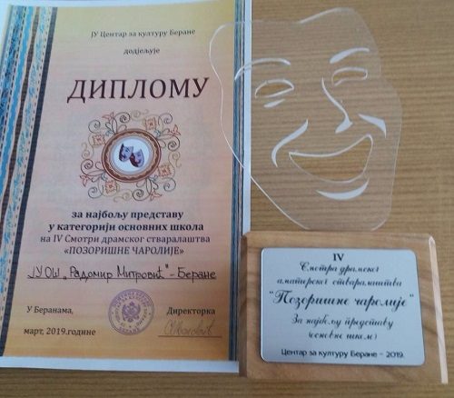 Odlukom stručnog žirija, koji su činili Velimir Ralević, Marija Iritano i Aleksandra Veljić, članovi kolektiva Centra za kulturu, za najbolju predstavu u kategoriji osnovnih škola proglašena je predstava „Znaš ti ko je moj tata“ koju izvode članovi dramske sekcije JU OŠ „Radomir Mitrović“.