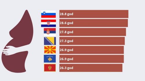 U regionu, prosječna starost žena pri porodu prvog djeteta najviša je u Sloveniji – 28,8 godina, zatim Hrvatskoj – 28,6, Srbiji 27,8, dok je u BiH prosječna dob 27,3 godina.