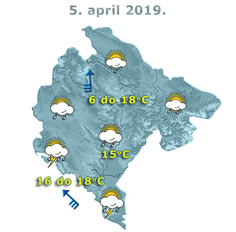 Vjetar južnih smjerova, umjeren do jak, ponegdje na udare veoma jak, krajem dana će oslabiti. Najviša dnevna temperatura vazduha šest do 18 stepeni, saopšteno je iz Zavoda za hidrometeorologiju.