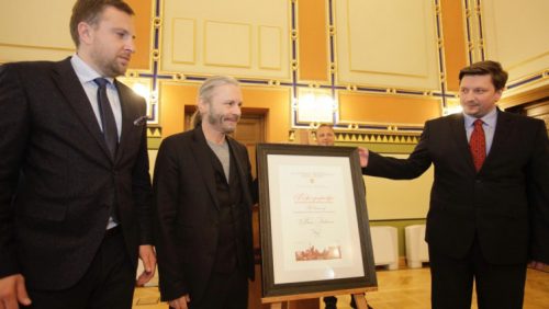 Brusu Dikinsonu, frontmenu britanskog benda ,,Iron Maiden”, u sarajevskoj Vijećnici uručeno je priznanje ,,Počasni građanin grada Sarajeva”.