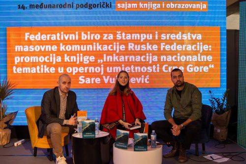 Federativni biro za štampu i sredstva masovne komunikacije Ruske Federacije je na Sajmu predstavio knjigu ,,Inkarnacija nacionalne tematike u operskoj umjetnosti Crne Gore” operske pjevačice Sare Vujošević. O knjizi su s autorkom razgovarali jedini crnogorski specijalista za nacionalne igre Davor Sedlarević i književnik Nikola Nikolić.