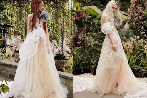 U kolekciji proljeće-ljeto 2020, Wang se okrenula svijetu flore, pažljivo dodajući cvijetne aranžmane u svoje vjenčanice. Dizajnerka se nije igrala sa printovima, već je cvijeće iskoristila kao dekor.