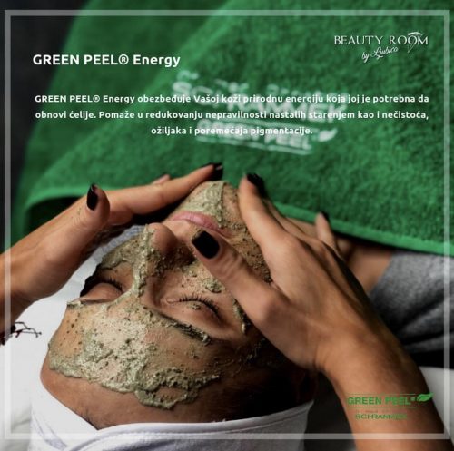 GREEN PEEL ENERGY za rezultat ima vitalnost i regeneraciju kože bez efekata perutanja. Ovaj tretman koži daje energiju. Stimuliše krvnu cirkulaciju i metabolizam i na taj način dovodi do prirodnog poboljšanja teksture kože bez efekata perutanja. Takođe, obezbjeđuje koži prirodnu energiju koja joj je potrebna da obnovi ćelije. Pomaže u redukovanju nepravilnosti nastalih starenjem kao i nečistoća, ožiljaka i poremećaja pigmentacije. Ovaj tretman vidljivo poboljšava kožu i usklađuje njenu površinu.