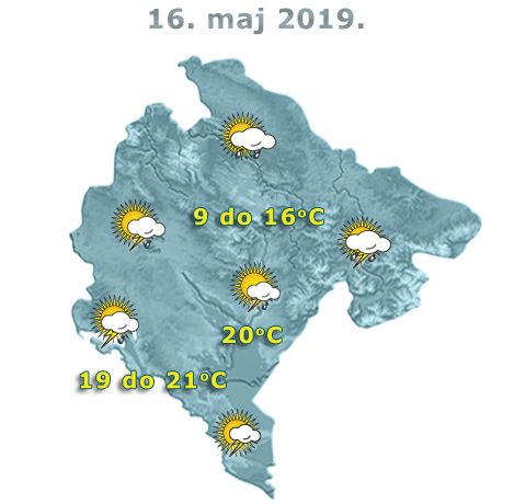 U južnim i centralnim predjelima Crne Gore danas će biti promjenljivo oblačno sa sunčanim intervalima, uglavnom, od sredine dana ponegdje kiša ili pljusak sa grmljavinom. Na sjeveru pretežno oblačno, povremeno sa kišom. Vjetar slab do umjeren, promjenljivog smjera. Najviša dnevna temperatura vazduha devet do 21 stepen, saopšteno je iz Zavoda za hidrometorologiju.