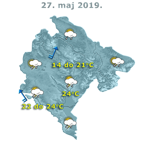 U Crnoj Gori danas će biti promjenljivo do pretežno oblačno, povremeno kiša, mjestimično pljuskovi i grmljavina. Vjetar mjestimično i povremeno umjeren do pojačan, južni i istočni, tokom noći u pojačanju. Najviša dnevna temperatura vazduha 14 do 24 stepena, saopšteno je iz Zavoda za hidrometeorologiju.