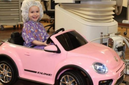 Doktori u Medicinskom centru u Modesitu, Kalifornija, dozvoljavaju svojim najmlađim pacijentima da se odvezu u operacionu salu u malenoj, ružičastoj Volkswagen Bubi, ili malom crnom Mercedesu. Crni se Mercedes pokazao tako produktivnim otkako je prošle godine uvezen u bolnicu, da su zaposleni odlučili donirati i jedan ružičasti autić.