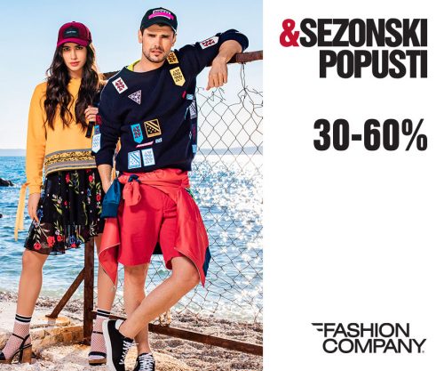 Od četvrtka 27. juna 2019. u prodavnicama Fashion Company startovali su sezonski popusti od 30 do 60 odsto na kolekciju proljeće/ljeto 2019. Najatraktivnije komade odjeće, obuće i aksesoara vodećih svijetskih urbanih modnih brendova možete naći u Fashion Company radnjama u Podgorici, Budvi, Kotoru, Baru i Nikšiću. Naša preporuka su Replay, Diesel, Tommy Hilfiger, Guess, Timberland, Calvin Klein, Levi’s, Steve Madden, Desigual, Mango, Manila Grace, Scotch&Soda, Philippe Model, Saucony Originals, Camper, Cesare Paciotti i drugi.