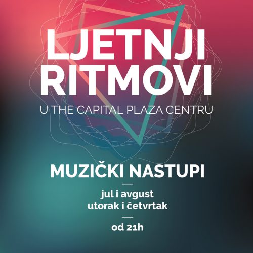 Atrijum “The Capital Plaza” centra u Podgorici razdrmaće ljetnji ritmovi svakog utorka i četvrtka u julu i avgustu. U saradnji sa “The Capital Plaza” centrom, hotel CentreVille se potrudio da gradjani glavnog grada i svi njegovi posjetioci ovog ljeta ne budu u potrazi isključivo za zabavom na našem primorju, već će biti u prilici da ljetnje večeri provode uživajući u Podgorici. Ovaj ljetnji serijal započeće 2. jula uz nastup Dejana Cukića, a 29. avgust je rezervisan za The grupu i završetak ,,Ljetnjih ritmova”. Pored njih, u julu će nastupiti Positive band, Marija Mikić, Venera & Lind uz podršku Enrico Marinelli (pobjednici albanskog “The Voice” takmičenja), Blackberries, Lidija & Dragan, Makao, Beso de loco i Neša Galija.