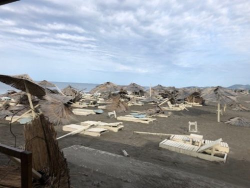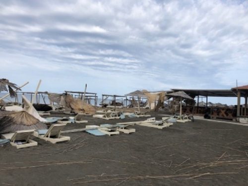 Nevrijeme koje je sinoć zahvatilo Ulcinj donijelo je velike probleme zakupcima plaža na to dijelu crnogorskog primorja.