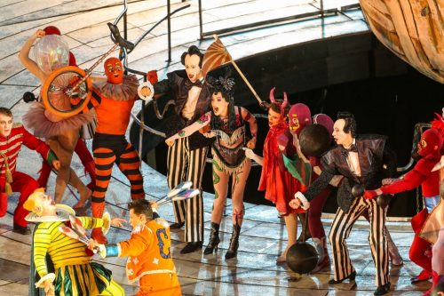 Reditelj Filip Štrecl osmislio je kulise sa monumentalnom klovnovskom glavom i šakama.