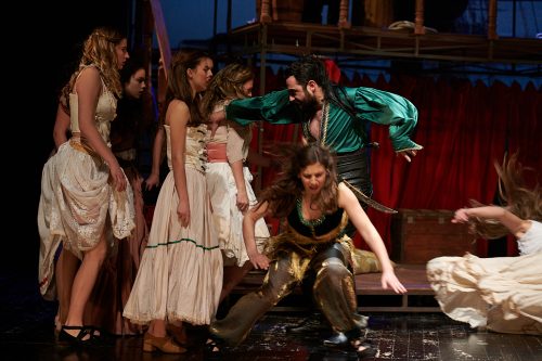 U predstavi igraju: Pavle Popović, Goran Slavić, Miloš Kašćelan, Jelena Đukić, Miloš Pejović, Marija Maša Labudović, Dubravka Drakić, Pavle Ilić, Sanja Popović, Branko Ilić, Marija Đurić, Jelena Simić, Katarina Krek, Branka Femić-Šćekić, Omar Bajramspahić, Ivan Kašćelan; cure sa svadbe/robinje: Vladana Mišević, Mia Kuč, Dušica Rovčanin, Stefanija Brčić, Đorđa Čolo, Borjana Obrenović, Jelena Knežević; momci sa svadbe/mornari/pirati: Aleksa Balević, Filip Petrović, Antonio Grgurović, Nikola Mrvaljević, Mirko Ognjanović.