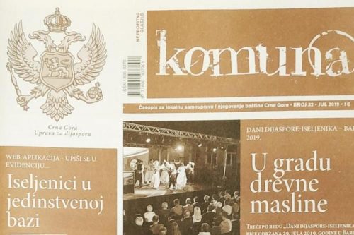 Izašao je iz štampe novi, 32. broj časopisa za lokalnu samoupravu i njegovanje baštine Crne Gore “Komun@” koji je ovoga puta u cjelosti posvećen dijaspori Crne Gore, od njenog nastanka do današnjih dana, na povećanom broju strana (40) i već se nalazi na prodajnim mjestima širom Crne Gore.