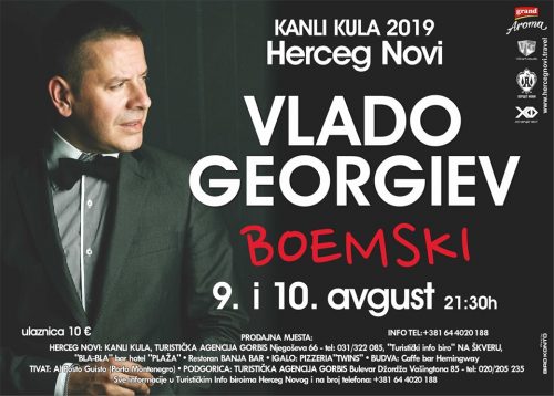 Kantautor Vlado Georgiev tradicionalno će na Kanli kuli u Herceg Novom održati dva koncerta, 9. i 10. avgusta. Oba nastupa počeće u 21.30 sati.