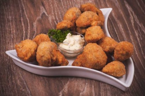 1.Umutite jaja, mlijeko i brašno da dobijete malo gušću smjesu (kao za palačinke). Posolite. Pečurke uvaljajte u ovu smjesu, pa u susam, i onda ih pržite na zagrijanom ulju. Pečurke vadite na papirni ubrus.