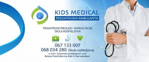 Pedijatrijska ambulanta Kids Medical, na Bulevaru Pera Ćetkovića u podgoričkom naselju Stari aerodrom, je mjesto gdje djeca i roditelji mogu dobiti pouzdane i kvalitetne medicinske usluge: pedijatrijske i konsultativne preglede i liječenje djece, savjetovalište za zdravu djecu, najsavremeniju dijagnostiku, edukaciju kroz školu roditeljstva…