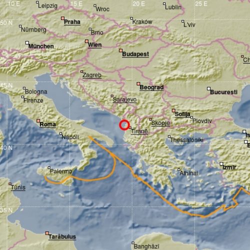 Status zemljotresa je A, dubina deset kilometara. Udaljenost je 33 kilometra zapadno od Tirane i kilometar zapadno od Drača.