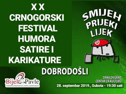 Završno veče jubilarnog, XX crnogorskog festivala humora, satire i karikature biće održano u subotu, 28. septembra, od 19.30 sati u sali Centra za kulturu u Danilovgradu.
