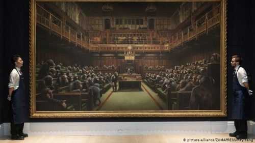 Jedna od najpoznatijih slika misterioznog umjetnika Benksija koja predstavlja majmune kako raspravljaju u britanskom parlamentu prodata je u četvrtak na aukciji u Londonu za više od 11 miliona eura.