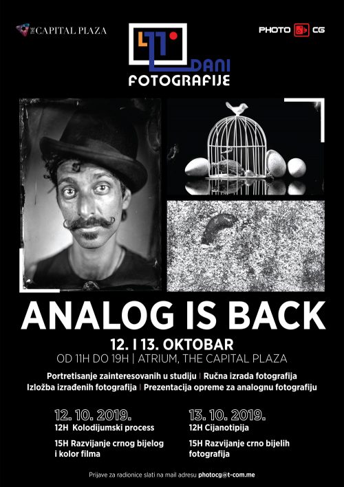 ,,Analog is back“ je dio 11. Dana fotografije koje organizuje NVO PhotoCG. Ovu aktivnost je podržala ,,The Capital Plaza” sa kojom će NVO PhotoCG ovaj projekat razvijati i ubuduće.