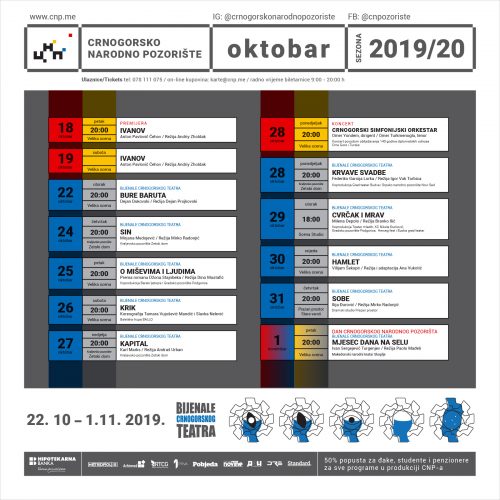 Premijerom „Ivanova“ A. P. Čehova u Crnogorskom narodnom pozorištu će u petak 18. oktobra biti otvorena nova pozorišna sezona 2019/2020. Čehovljevu dramu režirao je Andrij Žoldak, jedan od najznačajnijih savremenih evropskih pozorišnih reditelja. Žoldak potpisuje i kostimografiju i dizajn svjetla. Autorski tim predstave čine: scenograf i video dizajner Daniel Žoldak, dramaturškinja Ioana Malau i kompozitor Sergej Patramanski. Tekst je prevela Zlata Kocić a lektorka je Jelena Šušanj. Umjetnička koordinatorka je Katja Tobilevič, asistent kostimografa Jan Žoldak, asistent reditelja Nikola Kimovski a izvršna producentkinja Janja Ražnatović.