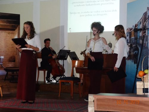 Učenici Gimnazije i njihove profesorice italijanskog jezika Milica Usančević i Marija Kopitović, uz svesrdnu podršku profesorice Tereze Albano, priredili su gostima, među kojima je bio i italijanski ambasador Nj. E. Luka Zelioli, pravi umjetnički doživljaj. Učenici Umjetničke škole za muziku i balet „Vasa Pavić ”, kao muzička pratnja, doprinijeli su kompletnom pozitivnom utisku, saopšteno je iz Gimnazije ,,Slobodan Škerović”.