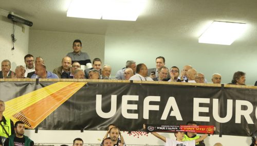 Stadion je izgledao impresivno, a viđene su i divne scene na tribinama gdje su navijači držali šalove koji su sa lijeve strane imali natpis Partizan u crno-bijeloj boji, a sa desne Man Utd/Manchester United u crvenoj nijansi.