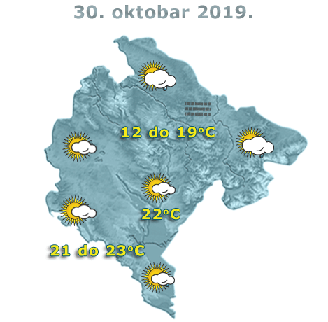 U Crnoj Gori danas će biti malo do umjereno oblačno uz dosta sunčanih intervala. Poslijepodne i tokom noći više oblaka, a ponegdje je moguća i kiša. Vjetar slab do umjeren promjenljivog smjera. Najviša dnevna temperatura vazduha od 12 do 23 stepena, saopšteno je iz Zavoda za hidrometeorologiju.