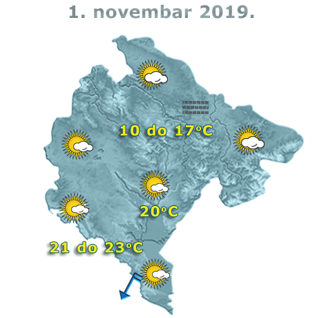 U Crnoj Gori danas će biti malo do umjereno oblačno, uz dosta sunčanih intervala na jugu, prvenstveno u noćnim satima ponegdje se očekuje kiša. Na sjeveru, prijepodne povećana oblačnost ili magla. Vjetar slab do umjeren promjenljivog smjera, na krajnjem jugoistoku pojačan sjeveroistočni. Najviša dnevna temperatura vazduha od 10 do 23 stepena, saopšteno je iz Zavoda za hidrometeorologiju.