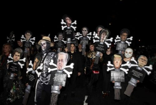 Na desetine hiljada maskiranih učesnika marširalo je sinoć u 46. godišnjoj paradi za Noć vještica u Njujorku održanoj pod pojačanim policijskim nadzorom.